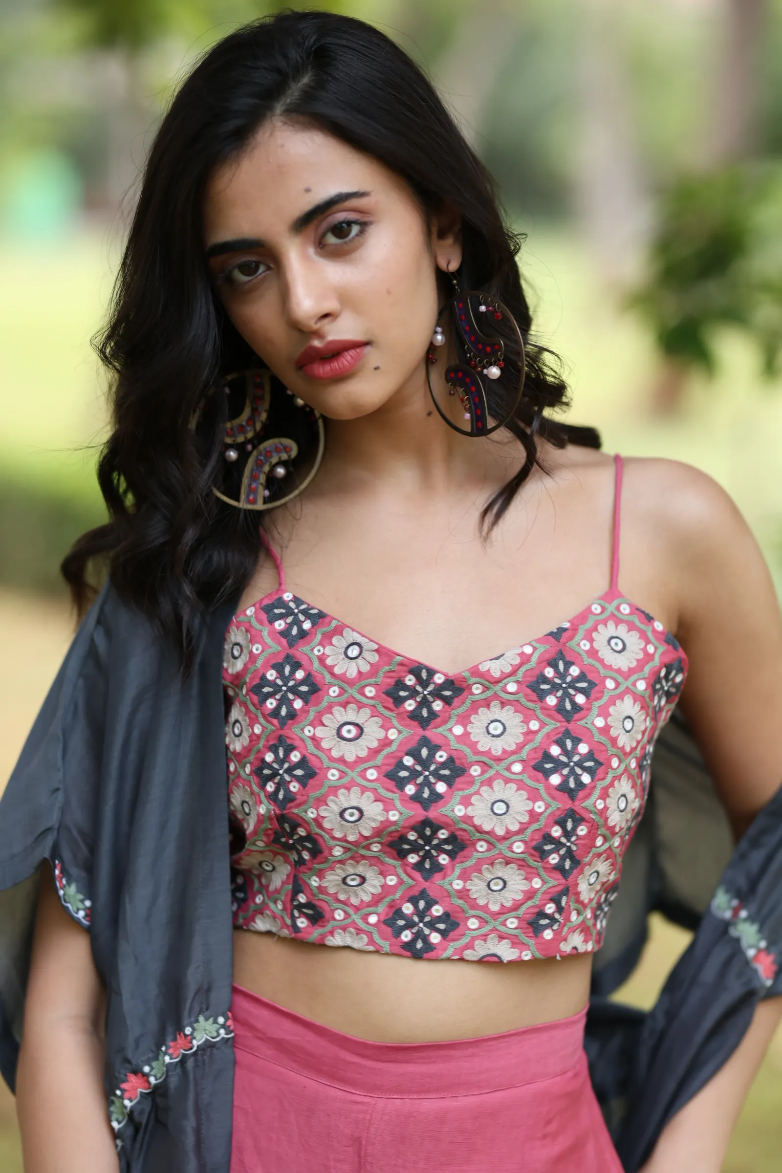 Neck: V-neck with embroidery