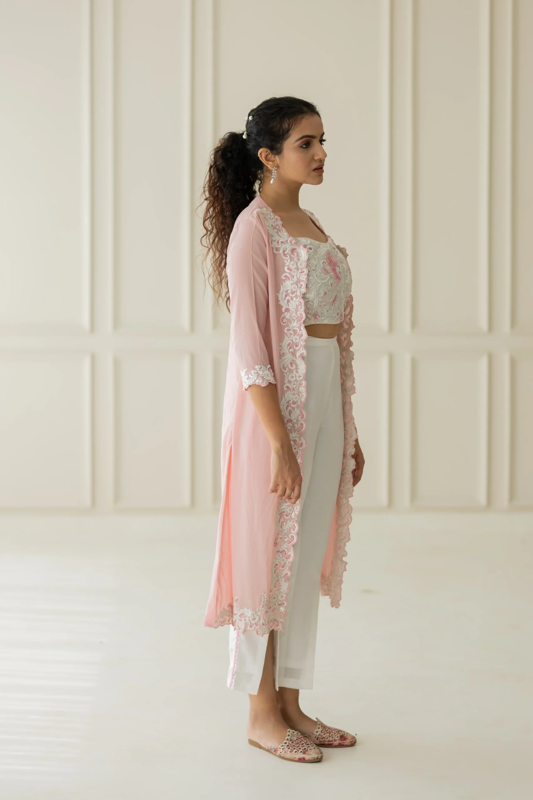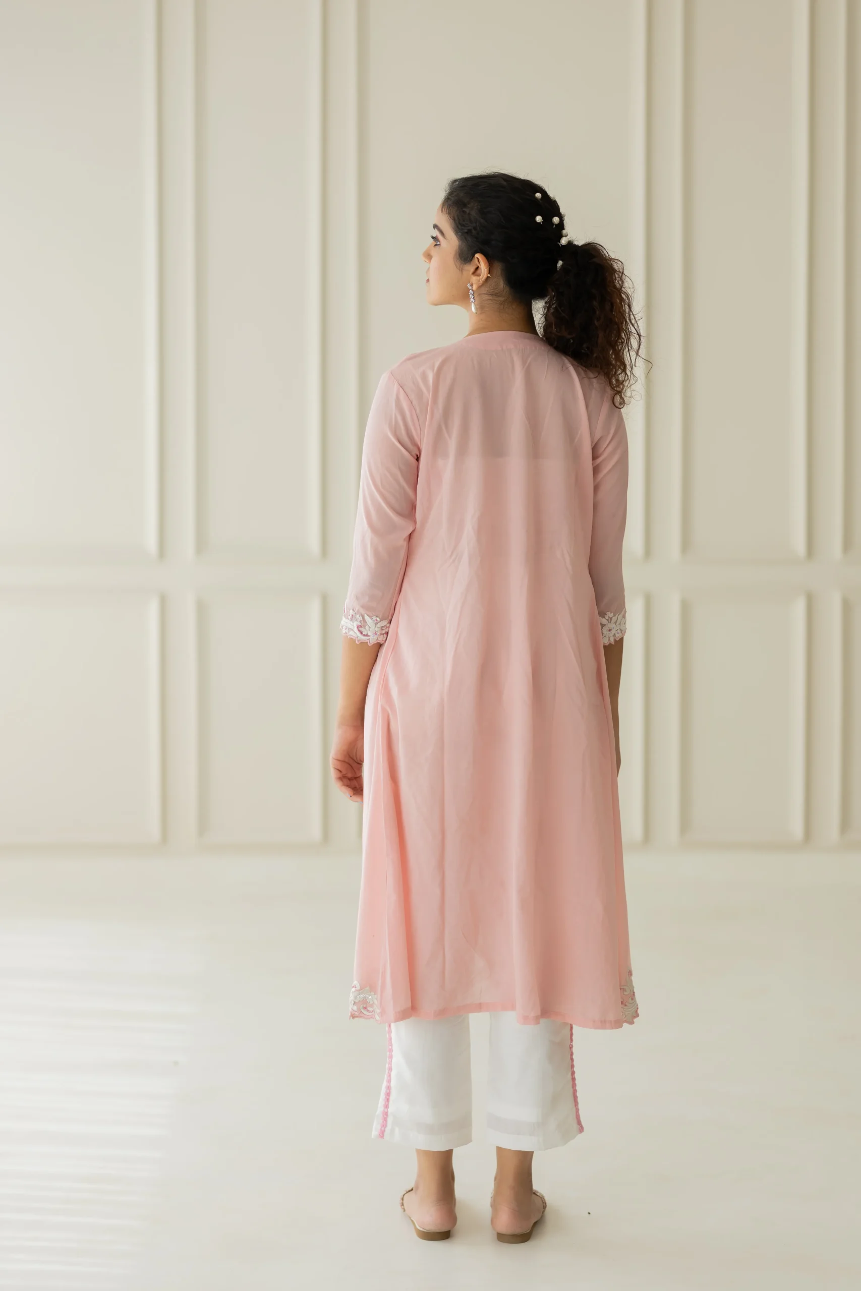Work: resham embroidery with pearl and sequins work on it