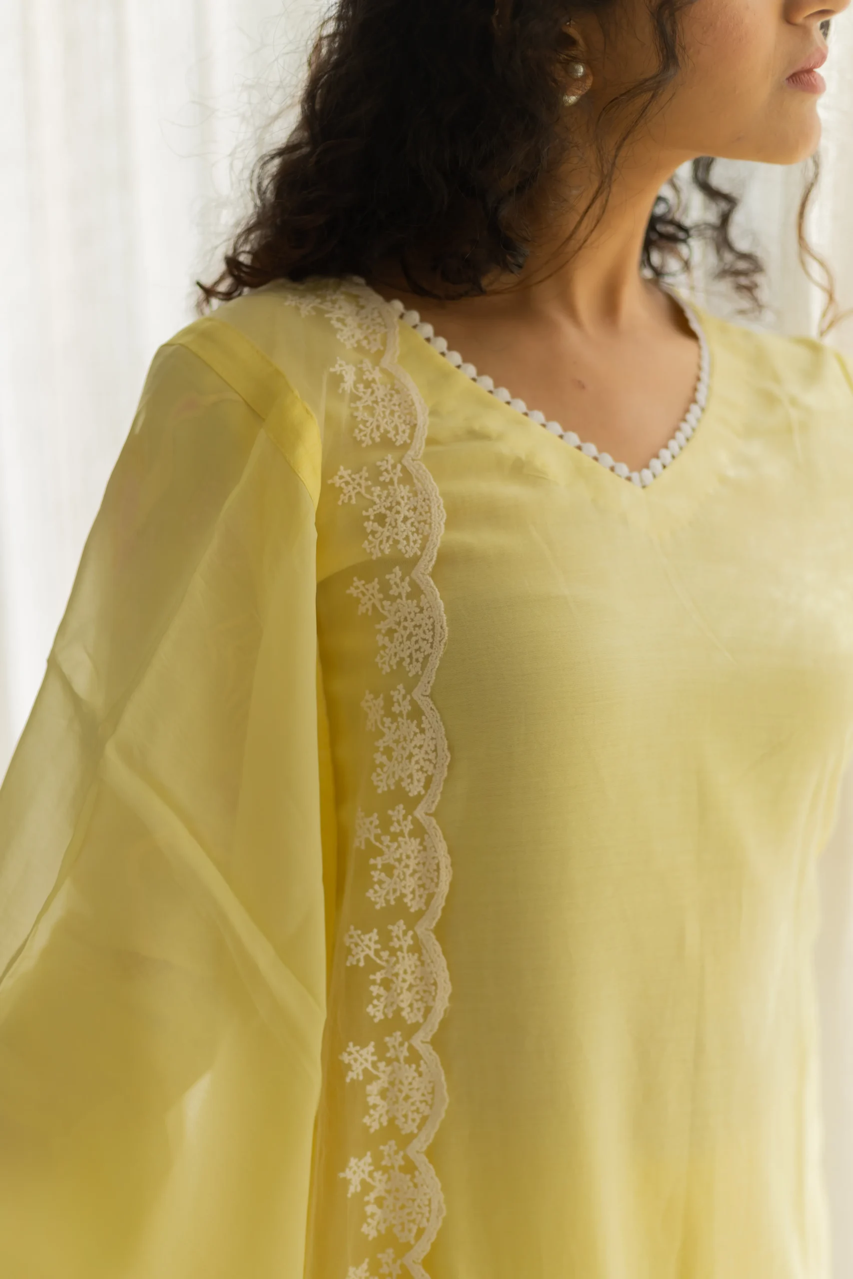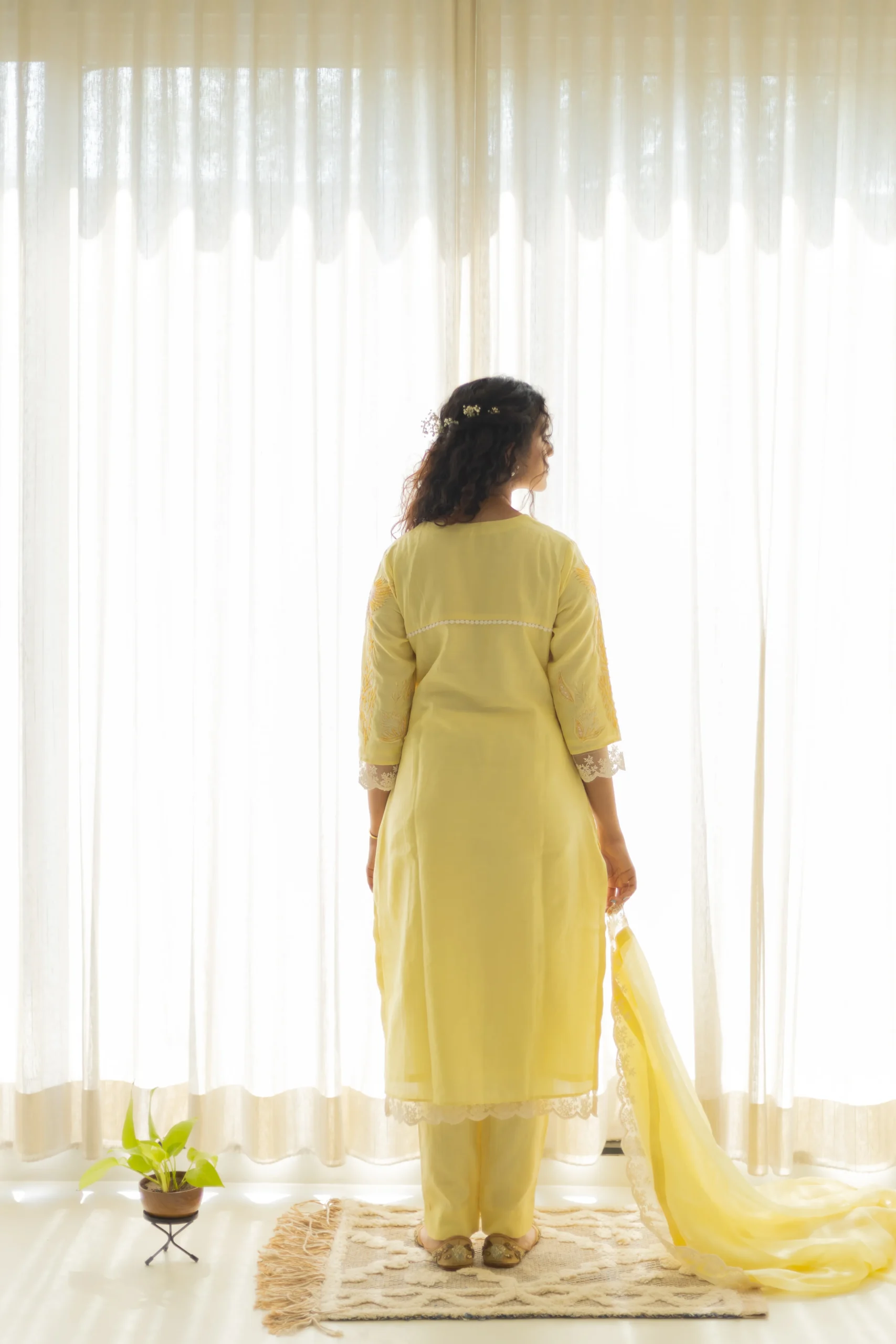 Work : appliqué work with handwork on it. Same work in Dupatta as well